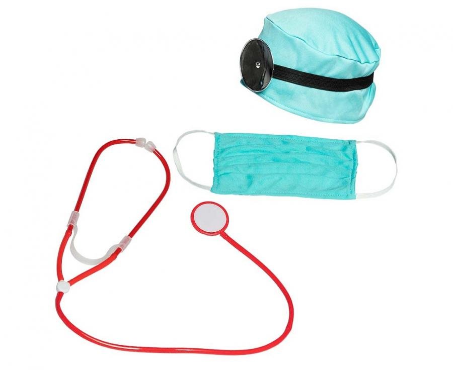 Komplektą sudaro: kepurė, galvos juosta, veido kaukė, stetoskopas Spalva: juoda, žalia, raudona Medžiaga: plastikas, poliesteris Gamintojas: „Boland“
