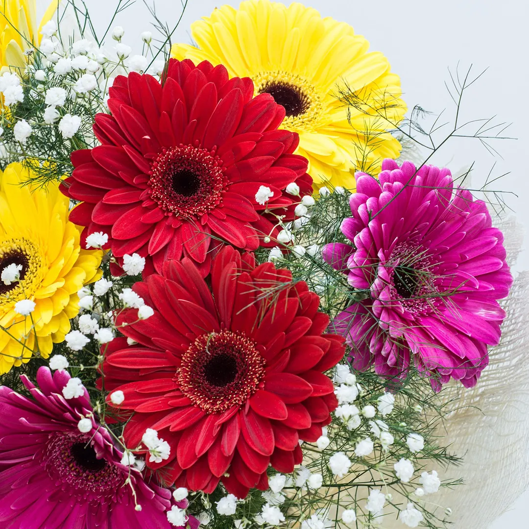 Šviežumas: Gerberoms itin svarbi vandens švara ir stiebo tvirtumas. Mes atrenkame tik tuos žiedus, kurių viduriukai yra švarūs, o žiedlapiai – standūs ir ryškūs. Taip užtikriname, kad gėlės džiugins ilgai.