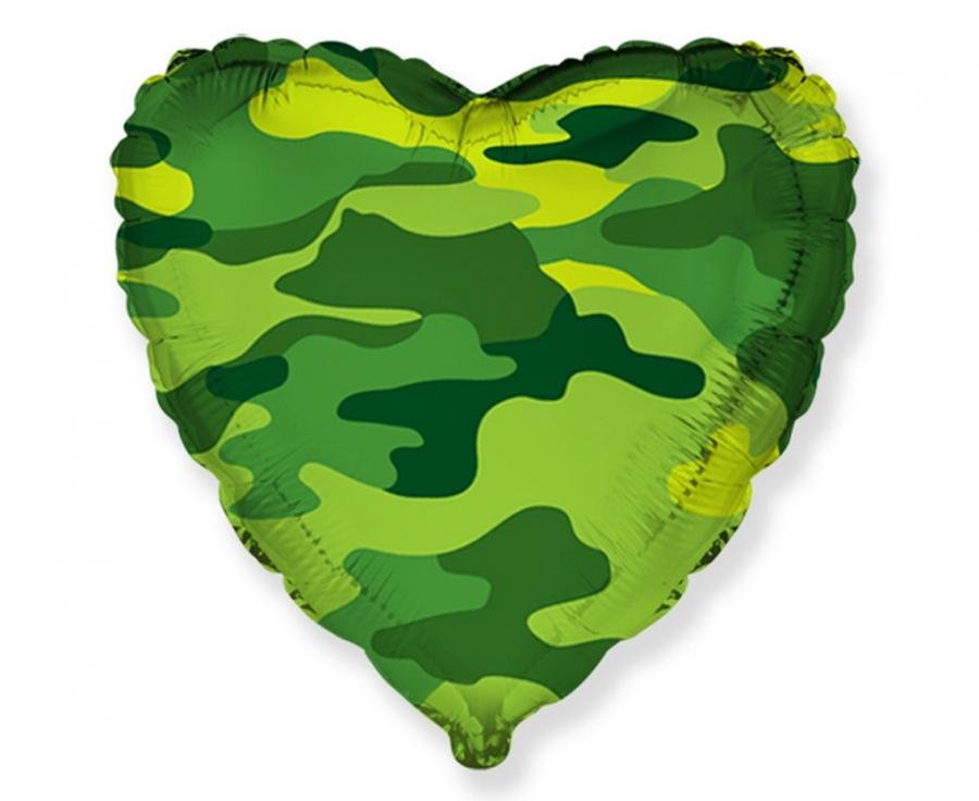 Folinis figūrinis helio balionas Kamufliažinė širdis, puikiai tinkantis šventėms ir staigmenoms.