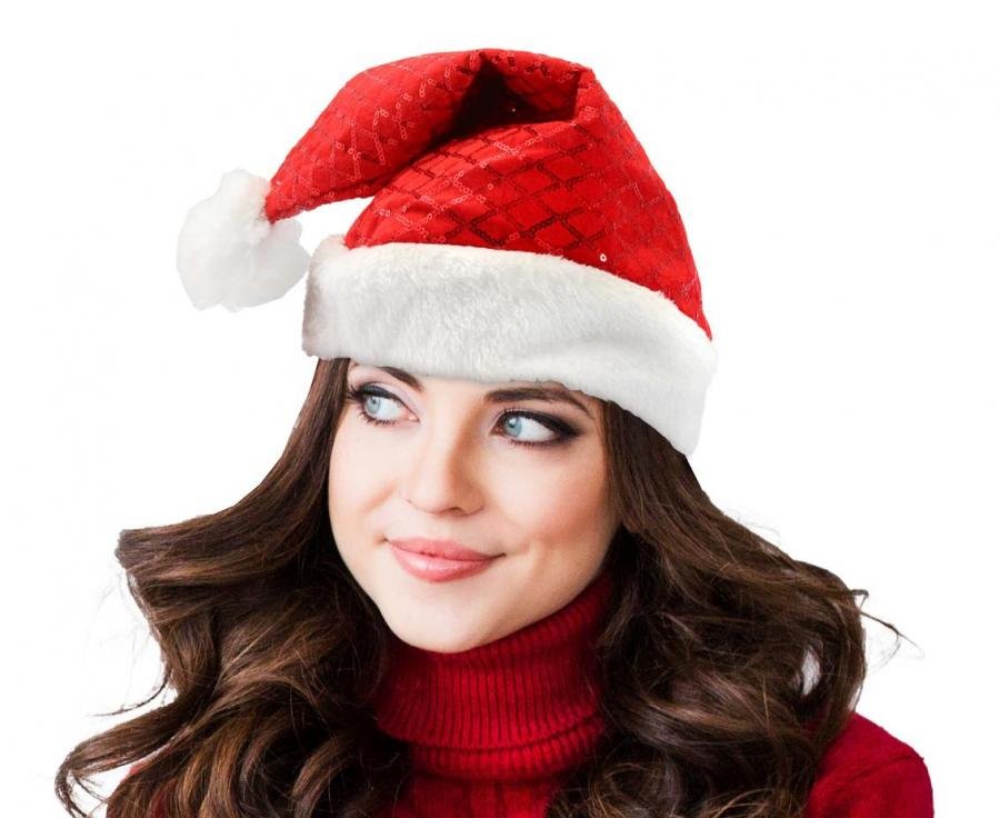 Kalėdų Senelio kepurė su blizgučiais suaugusiems, 30×42 cm