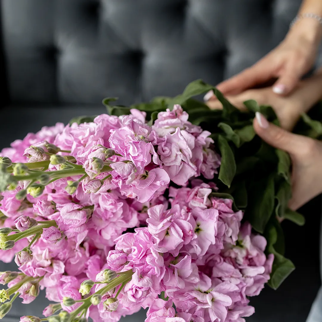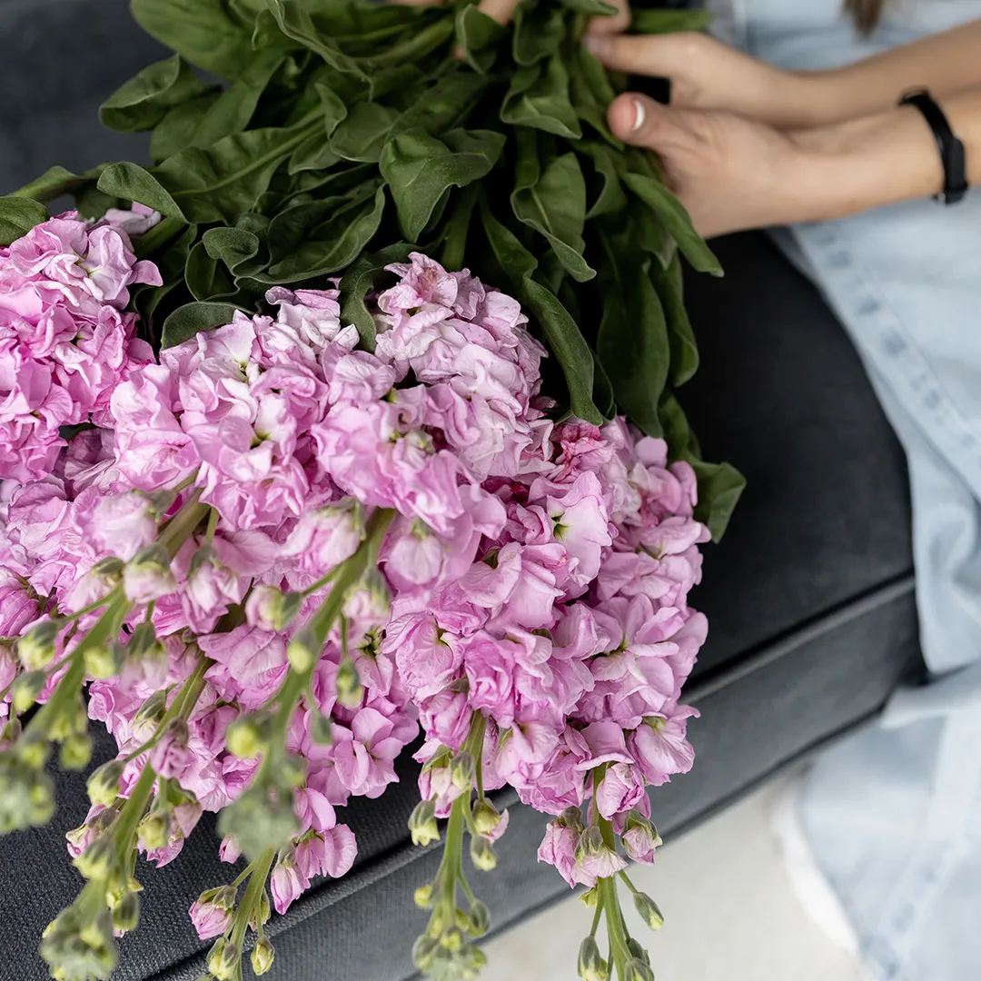 Planavimas: Matiolos yra sezoninės gėlės, tad jų atspalviai gali keistis. Norėdami būti tikri dėl konkrečios spalvos (pvz., šviesiai rožinės ar violetinės), rekomenduojame pasiteirauti arba užsisakyti prieš dieną.